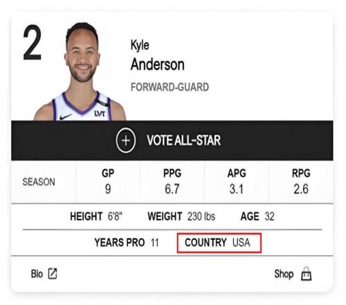 北京时间2025年12月22日,NBA官方网站及其中文页面上,球员李凯尔(凯尔·安德森)的国籍信息已正式从中国变更为美国,这位中国男篮历史上首位归化球员的国家队篇章,就此合上,去年夏天,他身披中国队战袍征战世界杯的身影还历历在目;如今,一切都已尘埃落定,留给中国篮球的是一段值得深思的往事与一个必须面对的未来