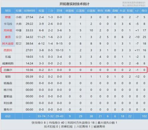 开拓者102-110输给活塞。开拓者后卫拉杨-吕佩尔替补出战10分36秒,2投0中,得到0分0板0助0断0帽2犯规,正负值-1。过去4场比赛,吕佩尔一共打了27分钟,合计3投0中,得分、篮板、助攻、抢断和盖帽,五项数据全是0!